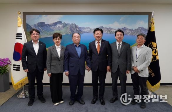 광장일보 나학천 기자 | 오영훈 제주특별자치도지사가 지난 28일 오후 서울 중구 민주평화통일자문회의 사무처에서 강창일 수석부의장과 면담하고, 제주도와 민주평통과의 한 층 더 협력적 관계로 나아가기 위한 업무 협조를 요청했다.