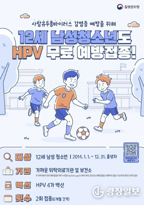지원 대상은 2014년 1월 1일부터 12월 31일 사이 출생한 남아로, HPV 4가 백신을 총 2회 무료로 접종받을 수 있다. 접종은 1차 접종 후 6개월 간격으로 진행되며 주소지와 관계없이 전국 보건소 및 지정 위탁의료기관에서 접종이 가능하다.