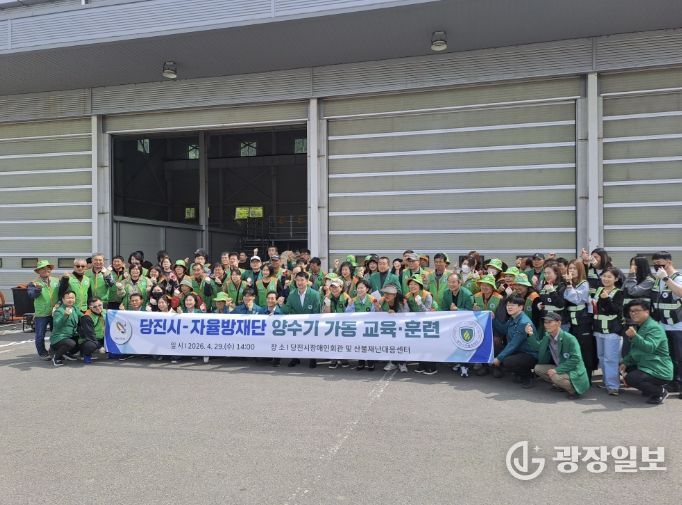 광장일보 나학천 기자 | 당진시는 지난 29일 당진시장애인회관 일원에서 본격적인 여름철에 대비해 ‘당진시-자율방재단 양수기 가동 교육훈련’을 실시했다고 30일 밝혔다.
