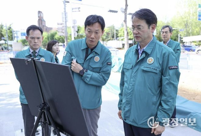 이날 이 시장은 보행자 안전을 중점으로, 현장 관리 실태를 면밀하게 살폈다. 특히 시민 불편을 줄이기 위한 교통 관리 대책과 현장에서 발생할 수 있는 안전사고를 예방하기 위한 작업자의 안전수칙 준수 여부, 안전 장비 상태 등을 확인했다.