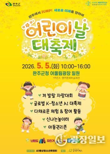 이종훈 군수 권한대행은 “이번 축제는 완주의 아이들이 더 높이 점프할 수 있도록 정성껏 준비한 무대”라며 “5월 5일, 완주군청 어울림광장에서 우리 어린이들이 주인공이 되어 새로운 미래를 향해 힘차게 날아오르길 기대한다”고 말했다.