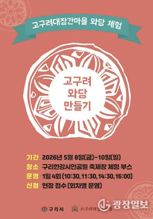 광장일보 주재영 기자 | 구리시는 오는 5월 8일부터 10일까지 구리한강시민공원에서 열리는 유채꽃 축제 기간 방문객을 대상으로 역사 체험 행사인 ‘고구려 와당 만들기 체험’공간을 운영한다.