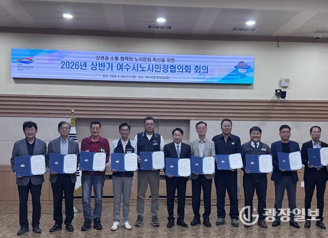 이날 협의회에서는 ▲2026년 지역노사민정 상생협력 지원사업 추진계획 ▲노사민정 협력사업 추진계획 ▲여수시 산업위기·고용위기 대응 지원사업 ▲여수국가산단 노동자 복합문화센터 건립사업 현황 등을 보고했다.
