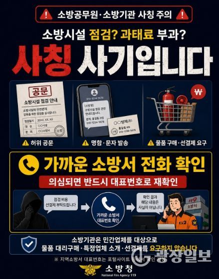 의심스러운 전화를 받을 경우 ▲상대방의 소속과 직위를 정확히 확인하고 ▲관할 소방서 대표번호를 통해 사실 여부를 재확인하며 ▲금전 요구에는 절대 응하지 말 것을 당부했다.