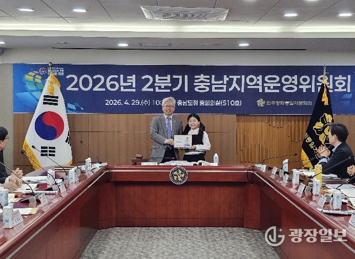 광장일보 주재영 기자 | 민주평화통일자문회의 충남지역회의는 29일 충남도청 본관 중회의실 510호에서 운영위원 20명이 참석한 가운데 ‘2026년 2분기 충남지역운영위원회’를 개최했다.
