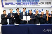 광장일보 나병석 기자 | 화성특례시는 16일 시청 중앙회의실에서 마파지태양광협동조합과 ‘화성형 기본소득 에너지자립마을 조성을 위한 업무협약(MOU)’을 체결했다. 이날 협약식에는 정명근 화성특례시장을 비롯해 김진원 마파지태양광 협동조합장 등이 참석해, 주민주도형 재생에너지 기반 에너지자립마을 조성사업의 추진에 상호 협력하기로 했다. 이번 사업은 국유지를 활용해 주민이 사업비 전액을 부담해 100% 주민주도형 ‘에너지자립마을’을 조성하는 경기도 최초 사례로, 재생에너지 수익을 마을 복지와 기본소득으로 연계하는 ‘화성형 기본사회’ 정책의 첫 시범 모델이다. 마파지태양광협동조합은 석포6리 주민 25가구가 공동 운영하는 협동조합으로, 사업주체로서 장안면 석포리 823번지 제방 국유지에 415kW 규모의 태양광 발전설비를 설치한다. 사업비는 총 5억 2천만 원으로 전액을 주민이 자부담한다. 시는 협약에 따라 인허가, 관계기관 협의, 제도 검토 등 사업 추진에 필요한 행정적·제도적 지원을 담당하고, 에너지자립마을이 안정적으로 운영될 수 있도록 정책적 기반 마련에 협력한다. 또한 재생에너지 수익이