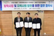 광장일보 나학천 기자 | 수원특례시 영통구는 지난 18일, 한국지역난방공사 수원지사, 구 주민자치협의회와 상호 협력을 바탕으로 지역 미래인재 육성을 위한 장학사업 협약을 체결했다. 이번 협약은 지역 내 학업 의지가 높으며 경제적 지원이 필요한 학생들을 지원하고, 주민과 기관이 함께 성장하는 지역 공동체의 기반을 마련하기 위해 추진됐다. 한편 한국지역난방공사는 내년도 장학사업이 보다 내실 있게 추진될 수 있도록 협약 체결과 함께 장학금 500만 원을 기탁했다. 해당 장학금은 사회복지공동모금회를 통해 관내 학생 가운데 도움이 필요한 대상자를 절차에 따라 선정한 뒤 전달될 예정이다. 한국지역난방공사 김진만 수원지사장은 “지역과 상생하는 공기업으로서 사회적 책임을 꾸준히 실천하고자 한다”며 “이번 장학금이 학생들의 학업과 미래 설계에 작은 힘이 되기를 바란다”고 말했다. 또한 장대현 구 주민자치협의회 회장은 “주민이 중심이 되어 지역 인재를 응원하고 지역 빌전에 기여할 수 있어 뜻깊다”며 “앞으로도 책임감을 가지고 장학사업 및 다양한 협력 사업을 성실히 수행하겠다”고 전했다. 장수석 영통구청장