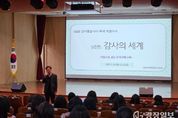 광장일보 나학천 기자 | 경기도수원교육지원청은 12월 3일 관내 학교와 소속 직원을 대상으로 ‘감사(監査)했습니다–폭삭 속았수다’ 공연연계형 감사사례교육을 운영했다. 이번 교육은 지난해에 이어 2년 연속 수원시립예술단의 찾아가는 예술무대와 협력해, 한 해 동안 감사와 업무에 힘쓴 교직원과 직원을 격려하고자 마련됐다. 교육은 수원시립공연단의 감성콘서트, 학교종합감사 사례 나눔, 공무원 범죄 통보사례 안내, 복무감사 주요 사례 소개 등으로 구성됐다. 부대행사로는 포토존·청렴존·메모리존을 운영해 참여형 교육의 폭을 넓혔다. 특히 포토존에서는 학창시절을 드레스코드로 교복 소품을 활용해 추억을 나눴고, 청렴존에서는 다트게임과 ‘내 마음 속 갑질 1위?’ 활동을 통해 다양한 목소리를 듣고 청렴의식을 환기했다. 메모리존에서는 ‘2026년 다 이루어질지니’를 주제로 새해 목표와 다짐을 작성하는 시간을 마련했다. 수원교육지원청 김선경 교육장은 “이번 교육은 전통적인 방식에서 벗어나 소통과 공감을 바탕으로 한 감사사례교육”이라며 “감사와 청렴을 다양한 형태로 녹여 교육 효과를 높이고, 앞으로도 학교현장에 도움이 되는 예방감사 기