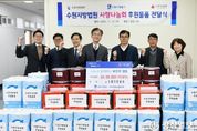 광장일보 나학천 기자 | 지난 27일 수원지방법원은 수원시 영통구에 연말지역사회 나눔의 일환으로 직접 담근 김치, 라면, 화장지 각 30박스 등 총 90박스의 물품을 기부했다. 전달식에는 수원지방법원와 영통구 관계자들이 참석해 따뜻한 온정을 나누는 시간을 가졌다. 2021년부터 영통구에 정기후원을 하는 수원지방법원 봉사단체‘사랑나눔회’는 직접 김치를 담그고 후원물품을 더하여 관내 수급자, 취약계층에게 지원하며 이웃에 대한 사랑과 나눔을 실천하고 '국민에게 가까이 있는 법원상'구현에 힘쓰고 있다. 이번 후원물품은 지역 내 취약계층 30여 가구에 배분될 예정이다. 김세윤 수원지방법원장은 “작은 정성이지만 지역 주민들에게 도움이 되길 바란다. 앞으로도 지역사회외 함께하는 따뜻한 법원이 되겠다”고 말했다. 장수석 영통구청장은 “수원지방법원의 꾸준한 나눔 실천에 진심으로 감사드린다. 기탁된 물품을 도움이 필요한 가정에 소중히 전달하겠다”고 감사 인사를 전했다.