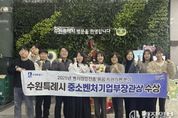 광장일보 나학천 기자 | 수원특례시가 중소벤처기업부가 주관한 벤처창업진흥 유공 포상에서 ‘우수정책입안단체’로 선정돼 중기부 장관상을 받았다. 시상식은 27일 경기창조경제혁신센터에서 열린 ‘2025 경기 딥테크 스타트업 FLEX’ 행사 중 열렸다. 수원시는 창업지원센터 운영, 수원기업새빛펀드 조성, 중소·벤처기업 자금지원 등 다양한 창업·기업 성장 정책을 운영해왔다. 먼저 2012년 개소한 창업지원센터를 중심으로 창업기업 689개사를 보육하고, 1133억원의 누적 매출, 208억원의 투자유치를 달성했다. 관내 창업보육센터와 3D프린터 특화형 1인 창조기업센터 운영을 지원해 2024년 한 해 동안 230여개 기업을 지원해 고용 801명, 매출 660억원, 투자유치 136억원 등의 성과를 이뤘다. 또 기술력은 있지만 자금력이 부족한 중소·벤처·창업기업이 성장할 수 있도록 투자하는 펀드 ‘수원기업새빛펀드’도 2023년 11월 출시된 1차 수원기업새빛펀드는 3149억 원이 조성됐고, 수원 기업 투자액은 315억 4000만 원(총 19개사)에 달했다. 2차 펀드 조성을 위해 지난 10월 20일에는 8개 운용사와 업무협약