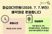 광장일보 이현나 기자 | 옥천군은 화요야간민원실 운영의 효율성을 높이고 군민의 불필요한 대기와 재방문을 줄이기 위해 오는 7월 7일부터 예약제로 전환해 운영한다고 밝혔다. 이번 예약제 전환은 민원실 야간 운영에 수반되는 조명‧냉난방 등 에너지 사용을 필요한 만큼만 합리적으로 운영하여 에너지 절약과 탄소 배출 저감에도 기여할 것으로 기대된다. 그동안 야간 민원 수요가 일정하지 않아, 민원 대기가 없는 시간에도 청사 내 조명과 냉난방이 가동되는 등 불필요한 에너지 사용이 발생해 왔다. 이에 군은 사전 예약을 통해 방문 수요를 미리 파악하고 민원 대응을 준비함으로써, 담당 창구를 필요한 범위로 운영하는 등 야간 민원실 운영을 효율화하는 방향으로 제도를 개선했다. 예약 접수는 운영일 전날 오후 6시까지 가능하며, 전화를 통해 신청할 수 있다. 예약 시에는 성명, 연락처, 방문 희망 시간, 민원 내용 등을 제출해야 한다. 군 관계자는 “예약제 도입을 통해 행정력 낭비를 줄이고 민원 처리 효율을 높이는 한편, 야간 청사 에너지 사용 절감 등 생활 속 에너지 절약 실천을 군정 전반으로 확산해 나가겠