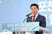 광장일보 이현나 기자 | 포천시는 10월 1일 오후 4시 소흘읍 행정복지센터 인근에서 옥정~포천 광역철도 건설사업 ‘포천시 철도시대 개막식’(부제: 시민과 함께 포천의 내일(Rail)을 잇다)과 안전기원제를 개최했다. 이번 행사는 포천시에 첫 광역철도가 착공되는 역사적 순간을 기념하고, 새로운 교통 시대의 출발을 알리기 위해 마련했다. 이날 개막식에는 백영현 포천시장을 비롯해 국회의원, 시·도의원, 경기도와 양주시 관계자, 지티엑스(GTX) 포천유치추진위원회, 그리고 많은 포천시민들이 참석해 철도시대의 개막을 함께 축하했다. 행사는 포천시립예술단의 대북과 모듬북 공연과 소리 공연으로 시작을 알리며 분위기를 고조시켰다. 1부에서는 옥정-포천 광역철도 건설사업의 경과보고를 진행하고 사업 추진 과정과 향후 계획을 공유했다. 또한 주요 기관 단체장과 고등학생 대표가 함께한 환영 세레머니를 통해 이번 착공이 미래세대를 위한 기반 조성과 포천의 새로운 도약임을 강조했다. 2부에서는 시공사인 태영건설, 디엘(DL)건설, 극동건설이 주관하는 안전기원제가 열려, 공사기간 중 무사고와 사업의 성공적 추진을 기원했다.