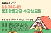 광장일보 이현나 기자 | 철원교육도서관은 3월 17일부터 6월 13일까지 지역주민의 문화 향유 기회 확대를 위한 상반기 문화활동 강좌를 운영한다. 이번 강좌는 유아, 학생, 학부모 및 시니어를 대상으로 총 7개 강좌를 운영하며, 본관 1~3교육실과 연계기관인 드림스타트 및 희망지역아동센터에서 진행한다. 유아 대상 강좌는 다양한 미술 재료를 활용한 기초 표현 활동 △플레이 아트와 그림책을 활용한 독서 및 의사소통 활동 △신나는 그림책 여행을 운영한다. 학생 대상 강좌는 세계 요리를 통해 다양한 문화를 이해하는 △흑백요리사와 자연 속 식물을 주제로 한 체험 관찰 활동 △파브르 식물기로 구성됐다. 학부모 대상 강좌는 일상과 여행에서 활용 가능한 생활 영어회화를 배우는 △모두의 영어와 풍경을 관찰하며 선과 형태로 표현하는 △오늘은 어반스케치를 운영한다. 또한 시니어를 위한 △브라보 시니어 라이프를 통해 신체 활동과 레크리에이션을 활용한 인지 활성화 프로그램을 진행한다. 도서관은 이번 프로그램을 통해 세대별 맞춤형 문화·체험 활동을 제공하고, 지역사회와 연계한 평생학습 기반을 강화하