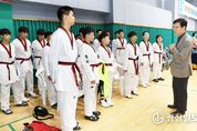 광장일보 이현나 기자 | 윤건영 충청북도교육감은 4일, 제55회 충청북도소년체육대회 경기장을 찾아 선수단을 격려하고 응원의 메시지를 전했다. 윤건영 교육감은 태권도 종목 경기가 열린 충북스포츠센터를 방문해 학생선수들을 격려하며 “자신의 한계를 넘어 당당히 도전하고 서로의 도전을 응원하는 성숙한 체육문화 속에서, 그동안의 노력과 성장을 나누는 뜻깊은 시간이 되길 바란다”라며 “이번 대회를 계기로 한층 더 도약할 여러분의 밝은 미래를 진심으로 응원한다.”라고 말했다. 또한 경기 관람 후 종목협회 임원 및 운영진과의 소통 자리에서는 “학생들이 최선의 기량을 발휘할 수 있도록 안전사고 예방에 각별히 유의해 달라”라고 당부했다. 한편, 제55회 충청북도소년체육대회는 3월 20일부터 이달 11일까지 열리며, 도내 초등학생 910명과 중학생 1,101명이 참가하고 있다. 대회를 통해 충북 대표로 선발된 학생 선수들은 오는 5월 23일부터 26일까지 부산광역시 일원에서 열리는 제55회 전국소년체육대회에 출전하게 된다.