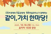 광장일보 주재영 기자 | 가평군은 오는 18일 오전 10시부터 오후 3시까지 음악역 1939 광장에서 주민과 함께하는 축제 ‘2025년 같이, 가치 한마당’을 연다. 이번 행사는 사회적경제기업의 판로 확대와 마을공동체, 경기행복마을관리소의 활동 성과를 알리고 주민 참여를 확대하기 위해 마련됐다. 행사에는 사회적경제기업 5곳, 마을공동체 16곳, 경기행복마을관리소 4곳 등 총 25개 단체가 참여한다. 이날 주민들은 현장에서 직접 사회적경제기업의 제품을 구매할 수 있으며, 공동체별 특색 있는 프로그램을 즐길 수 있다. 주요 프로그램은 △사회적경제기업 생산품 홍보·판매 △공동체와 경기행복마을관리소 활동 전시 및 무료 체험 △합창·뮤지컬 갈라쇼·힐링체조 등 공연 △경품 이벤트 등이 마련돼 있다. 특히 가평마을교육공동체가 제작한 단편영화 상영 등 주민 주도 콘텐츠도 선보일 예정이다. 가평군 관계자는 “‘같이, 가치 한마당’ 축제를 통해 지역사회에서 사회적경제와 공동체 활동이 더욱 확산되기를 기대한다”며 “이번 행사가 지역경제의 활력으로 이어질 수 있도록 주민 여러분의 많은 방문과 성원을 부탁드린다”고 말했다