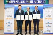광장일보 주재영 기자 | 전북특별자치도가 국내 금융중심지 선두로 도약하는 서막이 열렸다. 도는 23일 도청에서 김관영 전북자치도지사, 김성주 국민연금공단 이사장, 양종희 KB금융그룹 회장이 참석한 가운데 ‘자산운용 특화 금융생태계 조성 및 지역경제 활성화’를 위한 3자 업무협약을 체결했다. 이날 협약은 지난 1월 KB금융그룹이 발표한 전북혁신도시 내 ‘KB금융타운’ 조성 계획의 실질적 후속 조치로, 민·관·공이 원팀을 이뤄 전북을 글로벌 자산운용 거점으로 키우고 지역 경제의 자생적 성장 동력을 확보하기 위해 마련됐다. ■금융거점 조성부터 기후테크 펀드까지…전방위 협력 전북자치도·국민연금공단·KB금융그룹은 전북혁신도시 내 ‘KB금융타운’ 조성을 위해 역할을 나눠 맡는다. 도는 행정적 지원을 전담하고, 국민연금공단은 민간 금융기관과의 자산운용 협력체계를 강화해 전북 특색의 금융 생태계 구축을 위한 마중물 역할을 담당한다. KB금융그룹은 KB증권·KB자산운용 등 핵심 계열사 기능을 집결시키며, 지난달 발표한 250명 규모에서 늘어난 약 380명이 전북혁신도시에 근무할 예정이다. 여기에 전북혁신도시 외 전주 지역 근무