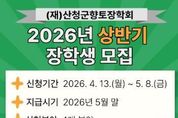 광장일보 주재영 기자 | (재)산청군향토장학회는 오는 13일부터 5월 8일까지 ‘2026년도 상반기 장학금’을 신청받는다고 10일 밝혔다. 총 4개 분야로 이뤄진 이번 장학금은 300명을 대상으로 △고교입학 장학금(1인당 100만원) △초중고 생활장학금(1인당 50만원) △대학 입학 생활장학금(1인당 265만원) △대학 재학 생활장학금(1인당 200만원) 등 4억 7100만원 규모다. 신청은 산청군 홈페이지에 게시된 신청서와 제출서류를 작성해 학교나 읍면사무소에서 하면 된다. 단 신청자가 많을 시 지원 규모 내에서 균등 지급할 계획이다. 자세한 사항은 군청 홈페이지를 참조하거나 산청군 평생교육담당로 문의하면 된다. 한편 산청군향토장학회는 지난 1999년부터 지역인재 육성과 우수 학생 유입을 위한 다양한 장학사업을 펼쳐오고 있다. 지난해에는 지역 내 초중고 학생과 대학생 등 680명에게 7억 9000만원의 장학금을 지원한 바 있다.