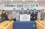 광장일보 이현나 기자 | 평화 경제 거점 도시 강원 고성군은 2025년 10월 21일, 주식회사 스카이랩스와 함께 만성질환(고혈압, 심혈관 질환 등) 의료취약계층 지원을 위한 업무협약을 체결했다. 이번 협약은 고성군과 스카이랩스가 상호 협력하여 지역민들의 건강 증진과 의료 접근성 향상을 목표로 추진됐다. 이날 협약식에는 고성군수를 비롯한 군 관계자들과 강원특별자치도 이지영 의원, 그리고 스카이랩스의 이병환 대표와 주요 관계자들이 참석했다. 고성군은 대한민국 최북단에 위치해 있어 1인 가구와 고령 인구 비중이 높고, 3차 의료기관과의 접근성이 낮은 현실을 감안하여 이번 협약이 매우 의미 있다고 밝혔다. 함명준 고성군수는 “우리 군민들의 건강관리에 늘 관심이 많으며, 스카이랩스가 개발한 ‘카트 비피’ 반지형 혈압계는 손쉽게 혈압을 측정할 수 있어 만성 심혈관질환자들의 건강관리에 큰 도움을 줄 것”이라고 전했다. 스카이랩스는 이번 협약을 통해 ‘카트 비피’ 혈압계를 고성군에 기탁하며, 이를 활용한 건강관리 지원 방안을 논의했습니다. ‘카트 비피’는 누적된 데이터를 기반으로 건강 상태를 모니터