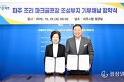 광장일보 주재영 기자 | 파주시는 지난 21일, 조리 파크골프장 조성 부지 기부채납 협약식을 개최해 파크골프장 조성 사업에 첫발을 내디뎠다. 이날 협약식에는 김경일 파주시장과 토지 기부자인 라보배 씨 등 관계자들이 참석했으며, 조리읍 이장단협의회장, 노인회장, 체육회장, 새마을지도자협의회장, 행복나눔협의체회장 등 지역 주요 단체장이 함께해 지역 발전의 의미를 더했다. 이번 협약은 파주 동부권역 주민의 복리 증진과 생활체육 활성화를 위해 추진된 것으로, 라보배 씨가 11,865㎡ 규모의 부지를 파주시에 무상으로 기부채납함에 따라 조리 파크골프장 조성 사업이 본격화될 예정이다. 파주시는 해당 부지를 활용해 9홀 규모의 산악형 파크골프장을 조성할 계획이며, 2026년 상반기 도시관리계획 결정 및 실시계획인가 절차를 마무리하고, 2026년 하반기 착공 및 2027년 3월 개장을 목표로 사업을 추진하고 있다. 토지 기부자 라보배 씨는 “제가 기부한 토지가 시민들의 건강과 삶의 질을 높이는 공간으로 활용된다는 점이 매우 뜻깊고 기쁘다”라며 “조리 파크골프장이 시민들이 즐겁게 모이고 오래도록 사랑받는 장소로 자
