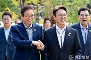 광장일보 주재영 기자 | 김영록 전라남도지사는 10일 김정관 산업통상부 장관, 송미령 농림축산식품부 장관을 잇따라 만나 전남도 핵심 현안과 정책과제를 건의하는 등 지역 현안 해결을 위해 서울과 세종을 오가며 광폭 행보를 이어갔다. 김영록 지사는 김정관 장관과 면담에서 국가기간산업인 석유화학·철강산업 위기 극복을 위해 광양지역 ‘산업위기 선제대응지역’ 지정 및 산업위기지역의 보통교부세 가산 일몰기한 연장(2025년→2027년), 여수국가산단 중심 ‘화학산업 소부장 특화단지 지정’, 광양국가산단 ‘수소환원제철 설비전환’ 지원 등을 건의했다. 특히 전기요금 인하를 요구하는 석유화학·철강 업계의 목소리를 적극 반영해 여수·광양산단을 대규모 공용 ESS 시범사업과 차세대 전력망(마이크로그리드) 실증 우선 대상지 지정 및 양 사업의 예비타당성 조사 면제와 국비 지원 등을 요청했다. 또한 정부 차원에서 준비 중인 ‘RE100 산업단지 특별법’에 RE100 산단 전기요금 50% 이상 할인, 예비타당성 조사 면제, 환경영향평가 간소화 등 규제 특례와 함께 입주기업 세제 혜택과 전남 서남권 일원을 국내 1호 RE100 산단 시범