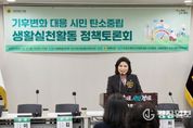 광장일보 주리아 기자 | 서울특별시의회가 주최하고 서울특별시의회 환경수자원위원회 박춘선 부위원장(강동3, 국민의힘)과 서울특별시 녹색서울시민위원회가 공동 주관한 '기후변화 대응 시민 탄소중립 생활실천활동 정책토론회'가 10월 21일 오후 3시 서울시의회 제2대회의실에서 성황리에 개최됐다. 이번 토론회는 일상 속에서 시민이 주도적으로 실천하는 탄소중립 활동을 공유하고, 이를 행정과 정책의 영역으로 확장할 방안을 논의하기 위해 마련된 자리로, 현장에는 서울시의회 의원과 시민단체, 환경전문가, 학계 관계자들이 참석했으며 유튜브 생중계를 통해 많은 시민들이 온라인으로 함께했다. 토론회를 주관한 박춘선 부위원장은 개회사에서 “기후위기 대응은 더 이상 거대한 담론의 영역에 머물러서는 안 되며, 시민 한 사람 한 사람의 일상 속 실천이 곧 서울의 탄소중립을 완성하는 힘이 된다”고 강조하며, “행정이 이러한 시민의 실천을 정책으로 뒷받침할 수 있을 때 지속가능한 도시가 가능하다”고 밝혔다. 이어 그는 시민 주도의 기후행동을 제도적으로 지원할 필요성을 강조하며 “정책이 시민의 실천을 품을 때 비로소 진정한 탄소중립 도시로 나아갈 수 있다”