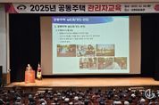 광장일보 주재영 기자 | 천안시는 16일 성환문화회관에서 천안시 의무관리대상 공동주택 334개 단지의 방범책임자와 시설물 안전관리책임자 650여 명을 대상으로 공동주택관리자 교육을 실시했다. 이번 교육은 최근 공동주택 환경 변화에 따른 주민 안전 확보와 화재 발생시 대응 능력 강화를 위해 소방안전교육 및 방범교육으로 진행됐다. 주요 교육 내용은 공동주택 보안환경 변화를 주제로 한 기계경비실무와 전기차 화재 대응, 공동주택 내 화재예방 및 대응 등으로 구성됐다. 시 관계자는 “공동주택 관리자 교육에 대한 관심과 열기가 어느 해보다 높았다”며 “향후 천안시 공동주택의 보안과 안전 관리운영에 기여할 것으로 기대된다”고 말했다.