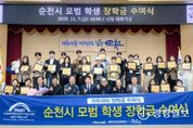 광장일보 주재영 기자 | 순천시는 7일 순천시청 대회의실에서 귀뚜라미문화재단 후원으로 ‘순천시 모범 학생 장학금 수여식’을 개최했다. 장학금 수여식에는 장학생 및 학부모 등 70여 명이 참석했으며, 시는 지역 내 국립순천대학교, 청암대학교, 순천제일대학교 3개 대학에서 추천받은 학생 25명에게 각 2백만원씩, 총 5천만원의 장학금과 장학증서를 전달했다. 이날 수여식에 참석한 최진민 귀뚜라미그룹 회장은 “학생들이 안정적인 교육 환경에서 학업에 전념할 수 있도록 앞으로도 지역사회와의 협력을 바탕으로 지원을 이어갈 계획이다”며, “귀뚜라미 장학생으로 선발된 여러분이 각자의 분야에서 역량을 발휘해 국가 발전에 기여하는 인재로 성장하기를 기대한다”고 격려했다. 노관규 순천시장은 “장학금을 받은 학생들과 학부모님들께 축하의 말씀을 전하며, 뜻깊은 자리를 만들어 주신 귀뚜라미그룹에 감사드린다”고 말했다. 이어 “청년이 머물고 도전하며 성장하는 도시를 만들기 위해 최선을 다하겠다”고 덧붙였다. 한편 “누구나 교육의 기회는 평등하여야 한다”는 취지로 최진민 회장이 1985년 설립한 귀뚜라미문화재단은 지난 40여 년