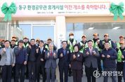 광장일보 이현나 기자 | 대전 동구는 8일 인동 113-8번지 일원에서 새롭게 조성된 환경공무관 휴게시설 이전 개소식을 개최했다고 밝혔다. 이날 개소식에는 박희조 동구청장, 오관영 동구의회의장, 황인규 CNCITY마음에너지재단이사장을 비롯한 주요 내빈과 환경공무관 등 50여 명이 참석해 새로운 휴게시설의 출발을 함께 축하했다. 이번 휴게시설 이전은 구와 CNCITY에너지(주)가 지난 4월 체결한 문화·관광융합 공동협력 협약을 바탕으로 추진됐으며, 노후화된 기존 시설을 개선해 환경공무관들이 보다 쾌적한 공간에서 휴식하고 재충전할 수 있도록 조성됐다. 새 단장한 휴게시설은 지하 1층부터 지상 2층까지 연면적 289.56㎡ 규모로 조성됐으며, 환경공무관들의 의견을 반영해 ▲2층 휴게공간 ▲1층 회의실 ▲지하 체력단련실 ▲냉난방시설 ▲샤워실 등 다양한 편의공간으로 구성됐다. 또한, 시스템에어컨, TV, 냉장고, 탁구대, 헬스기구세트 등 지정기탁 물품이 추가 설치되며 휴게시설 기능이 한층 강화됐다. 황인규 CNCITY마음에너지재단이사장은 “이번 휴게시설이 환경공무관들의 편안한 휴식과 재충전에 도
