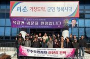 광장일보 주재영 기자 | 고성군은 고성군 주민자치연합회(회장 이회재)가 12월 5일, 거창군 북상면을 방문하여 우수 주민자치 사례를 공유하는 선진지 견학을 실시했다고 밝혔다. 이번 견학에는 고성군 주민자치연합회 임원과 14개 읍·면 주민자치회 위원 등 20여 명이 참여했으며, 2025년 경상남도 주민자치 박람회 우수사례 경진대회에서 장려상을 수상한 거창군 북상면 주민자치회를 방문해 주민총회 운영 방식, 주민자치 활동사업 현황, 주민자치센터 프로그램 운영 등 우수사례를 청취하고 공유했다. 참석자들은 북상면 주민자치회의 실제 운영사례 설명을 들은 뒤 고성군 주민자치회 운영과의 차이점, 주민참여예산 운영사례에 대한 질의응답을 진행하며 고성군에 적용 가능한 방안을 함께 모색했다. 이번 선진지 견학은 고성군 주민자치회의 역량 강화와 더불어, 각 읍·면 주민자치회가 우수사례를 바탕으로 내년도 사업을 구체화하고, 고성군 주민자치 위원의 역량을 강화하는 계기가 될 것으로 기대된다. 고성군 주민자치연합회 이회재 회장은 “거창군의 우수 주민자치 사례를 현장에서 직접 보고 들으니, 고성군 실정에 맞는 주민자치 발전 방