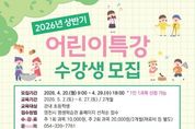 광장일보 주재영 기자 | 영천시 평생학습관(관장 정경자)은 관내 초등학생을 대상으로 ‘2026년 상반기 어린이특강’ 수강생을 20일부터 선착순으로 모집한다. 이번 특강은 아이들이 체험활동을 통해 자연스럽게 배우고 성장할 수 있도록, 신체 활동부터 예술·탐구 활동까지 총 11개의 다양한 프로그램으로 마련됐다. 오는 5월 2일부터 6월 27일까지 2개월간 운영되며, 수강 신청은 평생학습관 누리집에서 가능하다. 수강료는 주 1회 과목 1만원, 주 2회 과목 2만원으로 재료비는 별도다. 평생학습관 관계자는 “아이들이 특강을 통해 다양한 경험을 해보며 세상에 대한 호기심과 자신감을 키워나가길 바란다”며, “앞으로도 아이들의 눈높이에 맞는 다양한 프로그램을 지속적으로 마련해 나가겠다”고 전했다. 한편, 어린이특강에 대한 자세한 사항은 영천시 평생학습관 누리집을 참고하거나, 평생학습관 교육운영팀으로 문의하면 안내받을 수 있다.
