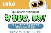 광장일보 주재영 기자 | 성남도시개발공사 중원도서관은 지역 어린이들에게 인공지능(AI) 기술을 활용한 새로운 독서 체험 기회를 제공하기 위해 ‘책 친구 로봇, 루카(LUKA)’를 오는 12월까지 운영한다고 21일 밝혔다. ‘루카’는 책 표지를 인식해 음성으로 내용을 읽어주는 인공지능 독서로봇으로, 유아와 어린이가 스스로 책을 읽고 들으며 독서의 즐거움을 느낄 수 있도록 돕는 AI 독서학습 보조기기다. 이번 사업은 루카를 활용한 전시와 기관 협력 프로그램을 통해 어린이들에게 친숙하고 흥미로운 독서 경험을 제공하고자 마련됐다. 먼저 중원도서관에서는 한 달간 ‘책 읽어줘! 루카’ 전시가 진행된다. 어린이·가족열람실에 루카와 전집을 함께 비치해, 어린이들이 직접 로봇을 체험하며 자연스럽게 책 읽는 즐거움과 호기심을 느낄 수 있도록 운영된다. 시민 누구나 자유롭게 참여 가능하며, AI 기술과 독서가 결합된 혁신적인 독서문화를 체험할 수 있는 특별한 기회를 제공한다. 또한, 도서관 밖에서도 아이들이 책과 만날 수 있도록 ‘책 나들이 ON 루카’ 협력 프로그램을 진행한다.