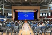 광장일보 주재영 기자 | 충남도는 1일 단국대 천안캠퍼스 체육관에서 ‘제106회 전국체육대회 충남선수단 결단식’을 열고, 대회 출전에 대한 결의를 다졌다. 김태흠 지사와 김영범 도 체육회장, 홍성현 도의장, 김지철 도교육감, 체육 관계자, 선수단 등 500여 명이 참석한 가운데, 이번 행사는 출전 보고, 단기 수여, 격려사, 결의문 낭독 등의 순으로 진행했다. 이날 행사에서 선수단은 지난 대회 전국 5위의 성적을 되돌아보고, 이번 대회에서 지난 1년간 갈고닦은 실력을 발휘해 충남 체육의 위상을 높이겠다고 다짐했다. 이번 대회에 출전하는 도 선수단은 역대 최대 규모인 1976명(선수 1359명, 임원 617명)으로 꾸려졌으며, 50개(정식 48, 시범 2) 전 종목에 나선다. 이 자리에서 김 지사는 “지난 3년 연속 종합 5위를 달성했고 지난해엔 2010년 이후 14년 만에 가장 많은 메달을 따 최고 성적을 기록하는 등 그동안 충남은 전국체전 상위권을 굳건히 지키며 대한민국 스포츠의 중심임을 증명해 왔다”라면서 “이번에 역대 최대 선수단을 조직했는데 서울, 경기를 제외하고 1위를 한번 해보자”라고 선