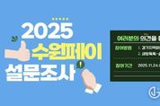 광장일보 나학천 기자 | 수원특례시가 24일부터 12월 5일까지 ‘2025년 수원페이 사용자 설문조사’를 한다. 설문 항목은 ▲사용 실태(사용 이유·주기, 월평균 충전액) ▲개선할 사항(적정 인센티브, 불편 사항) ▲만족도(가계 기여 여부, 소상공인소득증대 기여 여부) 등이다. 새빛톡톡 설문투표 게시판에서 설문에 참여할 수 있다. 경기지역화폐 앱의 팝업창을 클릭하면 설문조사 웹페이지로 연결된다. 조사 결과는 향후 수원페이 발행·운영 계획을 수립할 때 기초 자료로 활용할 예정이다. 2025년 10월 말 기준 수원페이 사용자는 91만 4800여 명이다. 수원시 관계자는 “수원페이 사용자의 소중한 의견을 반영해 더 나은 지역화폐 운영계획을 수립하겠다”며 “수원페이 사용자들이 적극적으로 설문조사에 참여해 주시길 바란다”고 말했다.