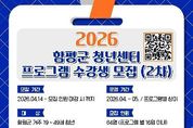 광장일보 주재영 기자 | 전남 함평군이 상반기 청년센터 프로그램 참여자를 모집한다. 함평군은 14일 “2026년 상반기 청년센터 프로그램 참여자를 2차 모집한다”고 밝혔다. 지원 대상은 공고일 기준 함평군에 주민등록을 두고 거주하고 있는 19세 이상 49세 이하 청년이다. 프로그램별로 최대 16명을 선착순 모집한다. 모집 대상 프로그램은 ▲공인중개사 자격증반 ▲온라인 마케팅 창업 교육 ▲영상 편집 교육 ▲성인 영어 회화반 등 총 4개다. 참여 희망자는 구비서류를 갖춰 네이버 폼 또는 전자우편으로 신청하면 된다. 군은 신청자에 대한 자격요건 확인 등을 거쳐 최종 선정자를 개별 통보하고, 최소 개강 인원(10명)에 미달한 강좌는 원활한 프로그램 운영을 위해 폐강 조치할 방침이다. 함평군 관계자는 “취·창업에 실질적으로 도움이 되는 양질의 교육으로 편성한 만큼 지역 청년들의 많은 관심과 참여를 바란다“고 말했다. 한편, 함평군 청년센터는 회의실(교육실), 컴퓨터 교육실, 스터디실, 공유 카페 등을 갖춘 청년 문화 복합 공간으로, 지난해 12월 정식 개소했다.