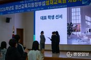 광장일보 주재영 기자 | 경산교육지원청은 4월 11일 경상북도교육청남부미래교육관 강당에서 경산교육지원청부설영재교육원 개강식을 개최했다. 이번 행사에는 학생 124명, 학부모 120여명, 영재지도강사 35명이 참석하여 영재교육의 시작을 알렸다. 경산교육지원청부설영재교육원은 초등수학, 초등과학, 초등AI융합, 초등영어, 중등과학, 중등수학, 중등영어 7개 과정으로 학기 중 주 1회 4시간(초등영재, 중등영어), 5시간(중등수학, 중등과학) 수업을 한다. 또 하계휴가 중에는 집중교육 활동으로 구성된 영재캠프를 운영하는 등 총 100시간의 다양한 프로그램을 통해 학생들의 잠재력을 키울 예정이다. 이번 개강식은 영재교육의 중요성을 알리고, 학생 및 학부모들에게 자긍심을 심어주는 동시에, 영재교육원 과정에 대한 소개와 질의응답 시간을 통해 소통의 장을 마련하고자 기획됐다. 허영선 경산교육지원청부설영재교육원장(경상북도 남부미래교육관장 겸 교육지원과장)은 “우리 영재교육원 학생들이 실패를 두려워하지 않는 자기주도적 연구자로 도전하고 성장하며 글로벌 리더로 거듭나달라.”고 당부하며 “앞으로 우리 영재교육원은 학생들이 자신의