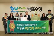 광장일보 주재영 기자 | 대구 수성구는 지난 24일 대구시가 주관하는 ‘2025년도 환경관리업무 평가’에서 4년 연속 우수상을 수상했다. 이번 평가는 대구시 9개 구·군을 대상으로 2025년 한 해 동안 추진한 환경정책, 기후대기, 수질개선 등 총 28개 항목의 환경관리 업무 추진 실적을 종합적으로 평가해 우수기관을 선정하는 방식으로 진행됐다. 수성구는 용학도서관 기후환경교육 우수도서관 지정, 생태관광 투어 등 다양한 환경교육 프로그램 운영, 녹색제품 구매 실적, 수질오염물질 배출사업장 관리, 자연환경 보전을 위한 망월지 생태축 복원사업 추진 등 다양한 분야에서 성과를 인정받았다. 김대권 수성구청장은 “탄소중립을 통해 기후변화에 적극 대응해야 하는 중요한 시기에 4년 연속 우수기관으로 선정돼 뜻깊다”며 “올해도 환경관리 분야 및 자연환경 보전사업을 내실 있게 추진해 쾌적하고 살기 좋은 수성구가 되도록 최선을 다하겠다”고 말했다.