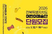 광장일보 주재영 기자 | 전북특별자치도가 8일 예향의 전통을 잇고 미래 문화예술 인재를 발굴하기 위해‘2026년도 전북특별자치도 어린이예술단’신규 단원 모집에 나선다. 모집 대상은 전북지역에 거주하는 초등학교 2학년부터 중학교 3학년까지의 어린이로, 음악과 예술에 재능과 관심이 있는 학생이라면 누구나 지원할 수 있다. 접수는 오는 1월 12일부터 19일까지 8일간 전북특별자치도청과 전북특별자치도립국악원 홈페이지를 통해 온라인으로 진행된다. 실기 및 면접 전형은 1월 24일 전통문화체험전수관에서 열리며, 실기(80점)와 인터뷰(20점)를 합산해 최종 합격자를 선발한다. 선발된 단원들은 전북특별자치도 어린이예술단원으로 활동하며, 매주 파트별 오케스트라 합주 교육과 체계적인 음악 교육을 받게 된다. 특히 예술단원은 정기 기획공연과 국내·외 초청공연 등 연 3회 이상의 무대 경험은 물론, 방학 기간 하계 집중교육과 신학기 캠프 등 다양한 교육·공연 프로그램에 참여할 수 있다. 예비단원 과정은 저학년 어린이의 기량과 합주 역량을 단계적으로 높이는 데 중점을 두고 운영되며, 평가를 거쳐 예술단원으로 승급할 수