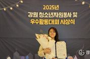 광장일보 이현나 기자 | 영월군청소년문화의집봉사동아리 소속 이가윤(무릉초6)이 지난 14일 ‘2025년 강원 청소년자원봉사 및 우수활동대회’ 시상식에서 한국청소년활동진흥원 이사장상을 받았다. 올해 문화의집 봉사동아리 ‘봉달’은 지역사회 환경문제 개선을 위해 주민들이 탄소중립과 올바른 쓰레기 배출을 실천할 수 있도록 돕는 청소년 자기주도형 봉사활동 ‘세이브어스’를 진행했다. 이번 활동은 봉사활동의 기획과 운영까지 모든 과정에 청소년이 주도적으로 진행했으며 이가윤 청소년은 이 과정에 자신의 변화점을 참여수기로 작성하여 우수상을 받게 됐다. 이가윤(무릉초6)은 “이번 활동은 제 기억에 평생 남을 듯한 뜻깊은 활동이었고, 이렇게 상까지 받게 되어 기쁘다”라며 “올해의 활동은 끝났지만 앞으로도 지속적으로 우리동네에 관심을 두고 환경을 지키는 활동들을 이어 나가겠다”라고 말했다.