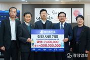 광장일보 주재영 기자 | (재)천안시복지재단은 20일 하이트진로㈜ 천안지점이 취약계층 주민을 위한 후원금 700만 원을 기탁했다고 밝혔다. 후원금은 복지사각지대 해소를 위한 지원사업과 김장 지원 사업을 위해 사용될 계획이다. 하이트진로 천안지점은 천안지역 복지사각지대 해소를 위해 현재까지 누적 3억 500만 원의 후원 활동을 이어오고 있다. 김태홍 하이트진로 천안지점장은 “지역사회 상생 경영을 실천하는 것이 기업의 사회적 책임”이라며 “앞으로도 폭넓은 사회공헌 활동을 통해 지역과 함께하는 기업이 될 것”이라고 말했다. 이운형 천안시복지재단 이사장은 “기업들의 상생 경영 실천을 위한 후원이 계속되고 있다”며 “후원자들의 취지에 맞게 잘 전달할 수 있도록 최선을 다할 것”이라고 말했다.