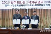 광장일보 이현나 기자 | 강원특별자치도교육청은 원주시, 원주교육지원청과 11월 18일 원주시청에서 ‘원주 더나은교육지구 연장지정 업무협약’을 체결했다. 이번 협약은 2018년 제1기 4년, 2022년 제2기 4년 운영에 이어 2026년부터 4년간 제3기 더나은교육지구 사업을 새롭게 추진하기 위해 마련됐다. 세 기관은 ‘배움과 성장, 문화예술로 동행하는 원주’라는 비전 아래 학교와 지역이 함께 성장하는 지속가능한 교육생태계 조성을 위해 매년 4억 원(교육청 2억 원, 군 2억 원)을 공동 지원한다. 원주 더나은교육지구는 학생의 전인적 성장을 지원하는 지역 중심 교육협력 사업으로, 학교·지자체·지역사회가 협력하는 ‘배움과 성장의 지역교육공동체’를 구축하고 있다. 지구중점 공동사업으로 △‘원주 한바퀴’ 원주 탐방 프로젝트 △‘원주 한바탕’ 원주 체험 프로젝트를 운영해 학생들이 지역의 역사·문화·자연을 탐방하며 원주 시민으로서의 정체성과 자긍심을 기를 수 있도록 돕는다. ‘예술 피움’ 사업은 △‘꿈키움’ 찾아가는 문화예술 소공연 △‘꿈그림’ 그림책·영상 창작 프로젝트 △‘꿈도약’ 리더십 스포츠 프로그램