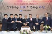 광장일보 주재영 기자 | 하남과 광주 지역 경제인들이 한자리에 모여 새해 경제 활성화와 화합을 다지는 ‘2026년 신년인사회’가 7일 오후 하남시청 본관 대회의실에서 열렸다. 광주하남상공회의소가 주관한 이날 행사에는 이현재 하남시장, 김대순 경기도 행정2부지사, 이성하 광주하남상공회의소 회장, 정병용 하남시의회 부의장 등 주요 인사와 기업인 500여 명이 참석했다. 이성하 광주하남상공회의소 회장은 신년사를 통해 “하남시는 한강의 물길을 따라 사람과 산업이 함께 성장해 온 도시이자 수도권의 핵심 성장 거점”이며 “상공회의소는 기업과 시민, 지역 사회를 잇는 가교로서 하남시의 지속 가능한 발전과 지역 경제 활성화를 위해 최선을 다하겠다”고 밝혔다. 이현재 하남시장은 “지난 2025년은 글로벌 경기 둔화 등 어려운 여건 속에서도 12개 우량기업 유치, 4개 기업 투자유치 보조금 지원 및 법인세 세수 회복이라는 값진 성과를 거두며 ‘기업 FIRST 하남’의 기틀을 견고히 다진 한 해였다”며 기업인들에게 깊은 감사를 전했다. 이어 “2026년은 하남시가 대도약을 완성하는 해로, 5성급 호텔 유치, K-스타월