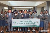 광장일보 나학천 기자 | 짐바브웨를 방문 중인 천안시 대표단이 지난 16일(현지시각) 하라레 시청에서 우호교류 10주년 기념행사에 참석해 양 도시 간 협력 관계를 공고히 했다. 김석필 권한대행 부시장은 이날 제이콥 마퓸 하라레시장과 면담을 갖고, 우호교류 10주년 기념패를 상호 교환했다 천안시는 천안의 국보인 ‘봉선홍경사 갈기비’를 형상화한 기념패를 전달했으며, 하라레시는 양 도시의 공동 발전을 기원하는 기념식수 행사를 열고 협력의지를 다졌다. 대표단은 하라레 시립도서관을 찾아 천안시 청수도서관 등에서 마련한 영어 도서 233권을 기증했다. 또한 샐리 무가베 국립 어린이병원을 방문해 현지 아동들을 위한 교육용 미니블록과 영어 동화책을 전달했다. 이어 주짐바브웨 대한민국 대사관이 주최한 환영 행사에 참석해 현지 한인회, 기업 관계자들과 함께 아프리카 지역 내 천안 기업의 진출 방안과 국제적 네트워크 강화 대책을 논의했다. 대표단은 이후 남아프리카공화국으로 이동해 세계한인경제무역협회(OKTA) 케이프타운지회와 수출·통상 협력 방안을 협의하고 한국전쟁 참전 기념비를 참배할 예정