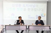 광장일보 이현나 기자 | 김영환 충청북도지사는 13일 충주를 방문해 지역 내 주요 현안사업장과 민생현장을 살피고 도정보고회를 통해 충주시민과 소통의 시간을 가졌다. 김 지사는 이날 통합돌봄 관계자와의 오찬간담회를 시작으로 달천동 행정복지센터를 방문해 생활 SOC사업 운영 현장을 확인하고 주민 주도의 도시재생 사업의 성과를 격려했다. 이어, 전통시장 장보기 행사와 함께 시장상인들의 현장 이야기를 청취했으며, 준공을 앞둔 건지노을숲 공사 현장을 살피며 관광분야 종사자와 함께 간담회를 가졌다. 이후 충주시의회 의원들과 지역 현안에 대한 의견을 나누고 3층 대회의실에서 300여 명의 충주시민이 참여한 가운데 도정보고회를 진행했다. 보고회에서는 2026년 도정운영방향과 함께 일하는밥퍼, 의료비후불제, 도시농부, 도시근로자 등 도정 주요사업을 소개했다. 또한, 충주시민과의 토크콘서트에서 △충북 도립 대표도서관 충주 건립 △탄금호 금가권역 생태관광공원 조성 △특장차 수소파워팩센터 건립 △충주시립노인요양원 기능보강 △충주 지방정원 조성 등 시 주요 사업에 대한 의견을 나눴다. 김영환 지사