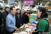 광장일보 주재영 기자 | 김영록 전라남도지사는 13일과 16일 광양 중마시장과 여수 서시장주변시장을 방문, 물가 상승과 고금리 등에 따른 소비심리 위축으로 어려운 상인들을 격려하고 지역사랑상품권으로 장보기 행사를 펼친다. 김영록 지사는 13일 명절 물가 동향을 살피며 전남·광주 통합 추진에 따른 민생경제 지원 대책을 설명하고, 지역사랑상품권으로 설 제수용품과 지역특산품을 구매하며 상인들을 격려하고 애로사항을 청취했다. 특히 시장 상인들과 소통하며 지역경제의 근간인 시장 상인들이 안정적으로 영업하고 번창하도록 적극 지원할 것임을 밝혔다. 전통시장을 찾은 이용객과 인사를 나누며 넉넉한 인심이 있는 전통시장에 자주 방문할 것을 권장하고 가족과 함께 건강하고 풍요로운 명절을 보내길 바라는 덕담도 나눴다. 김영록 지사는 “지역경제와 직결된 공간인 전통시장 활성화 시책을 적극 발굴하고 지역 소상공인과 소통을 강화할 것”이라며 “도민들께서 지역 전통시장이 활기를 찾도록 많이 이용하길 부탁드린다”고 말했다.