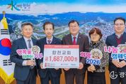 광장일보 주재영 기자 | 합천군은 6일, 합천읍에 소재한 합천교회(목사 김대근)가 합천군청을 방문해 이웃돕기 성금 1,687,000원을 기탁했다고 밝혔다. 이번 기탁은 지역 사회의 복지 향상과 이웃 사랑의 실천을 위한 ‘이웃돕기 바자회’에서 발생한 수익금으로, 이번 기탁식에는 김대근 목사를 비롯해 심재수 장로와 김영희 권사가 참석하여 따뜻한 마음을 나누었다. 김대근 목사는 “우리 주변의 모든 이웃들이 더욱 건강하고 행복한 삶을 살 수 있기를 기도하는 마음으로 성금을 전달하게 됐다”며 “앞으로도 다양한 방법으로 주변 이웃들을 돕는 활동을 꾸준히 이어나가겠다"고 말했다. 김윤철 합천군수는 "이웃을 위하는 따뜻한 마음으로 나눔을 실천해주셔서 감사드리며, 소중한 성금은 꼭 필요한 이웃에게 전달될 수 있도록 하겠다"고 말했다. 한편 합천군은 2025년 12월 1일부터 2026년 1월 31일까지 희망2026나눔캠페인 이웃돕기 성금 집중 모금 기간을 운영하고 있다. 기탁받은 성금은 경남사회복지공동모금회를 통해 관내 어려운 이웃에 지원할 계획이다. 성금 기탁을 희망하는 분들은 합천군청 주