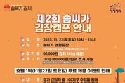광장일보 이현나 기자 | 영월군 상동읍의 청정 지역 김치 브랜드인 농업회사법인 솜씨가는 오는 11월 22일 토요일 오전 9시부터 오후 6시까지 제2회 솜씨가 김장캠프를 개최한다. 이번 행사는 김장 체험을 통해 지역 농산물의 우수성을 널리 알리고 지역 주민과 관광객이 함께 어울리는 상생의 장을 마련하기 위해 기획됐다. 김장캠프에서는 상동읍 전 주민을 초청해 식사를 대접하고 소규모 콘서트와 경품 행사 등을 진행하며 주민 화합의 분위기를 조성할 예정이다. 또한 지역 내 캠핑장과 연계해 외부 관광객에게 숙소를 제공함으로써 방문객 유치와 지역 관광 활성화에도 이바지할 계획이다. 행사에 필요한 절임배추 역시 지역 내에서 구매해 지역경제에 도움이 될 수 있도록 했다. 아울러 상동고 야구부 학생들과 함께 김장을 버무리는 체험을 진행한 뒤 완성된 김치를 관내 저소득층 가구에 지원할 예정이며, 김장 나눔을 통해 지역사회 돌봄과 따뜻한 나눔 문화를 확산하는 계기가 될 것으로 기대하고 있다.