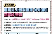 광장일보 주재영 기자 | 영주시와 영주시사회적경제지원센터는 신규 사회적경제기업 발굴 및 육성을 위해 '2026 영주시 사회적경제 아카데미' 교육생을 3월 11일부터 25일까지 모집한다. 이번 아카데미는 사회적경제기업 설립과 운영에 관심이 있는 지역 주민과 기관·단체를 대상으로 선착순 18명을 모집하며, 교육은 3월 26일 오후 1시부터 6시까지 총 5시간 과정으로 영주시사회적경제지원센터 교육장(영주시 중앙로 7, 2층)에서 진행된다. 교육은 사회적경제 분야 전문강사를 초빙해 △사회적경제의 이해 △사회적경제기업가 특강 △사회적기업/협동조합 설립 절차 등의 내용으로 진행된다. 또한, 교육 이후에는 신청자를 대상으로 사회적경제기업 설립을 위한 1:1 맞춤형 컨설팅을 제공하여 사회적경제기업 설립 전반을 체계적으로 지원할 예정이다. 아카데미 모집과 관련한 자세한 사항은 영주시사회적경제지원센터 홈페이지에서 확인할 수 있으며, 참여를 희망하는 경우 3월 25일까지 포스터 내 QR코드(네이버폼) 또는 유선 신청을 통해 접수하면 된다. 정교완 일자리경제과장은 “이번 아카데미가 사회적경제에 대한 이해를
