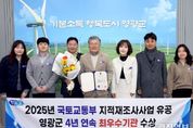 광장일보 주재영 기자 | 영광군은 국토교통부가 주관한 '2025년 지적재조사사업 업무 평가'에서 4년 연속 최우수기관으로 선정되어 국토교통부장관 기관 표창을 수상했다고 밝혔다. 이번 평가는 전국 지방자치단체를 대상으로 지적재조사사업 추진 실적, 공정률, 홍보성과, 정책 기여도 등을 평가해 산정한다. 영광군은 2025년 4개 지구 5,300필지에 대하여 사전 감정평가를 실시하고 경계결정통지서와 함께 조정금조서를 통지함으로써 토지소유자의 조정금에 대한 사전 보완조치가 가능했으며, 불필요한 행정력 낭비를 방지할 뿐만 아니라 신속한 사업 추진에 기여했다. 특히 책임수행기관 간 실무회의 운영을 통한 사업공정 지연 등 문제점 해결방안을 모색하고, 신속한 지원을 위한 관리체계를 구축했다. 주민설명회, 경계조정 등에 활용할 수 있도록 최신의 정밀 항공영상을 제공했던 점 등도 좋은 평가를 받았다. 군 관계자는 “지적재조사사업은 군민의 재산권 보호와 토지 이용의 효율성을 높이는데 중요한 역할을 하고 있다”라며“앞으로도 적극적인 사업 추진을 통해 토지경계 분쟁에 따른 주민 갈등을 해소하고 토지의 활용 가