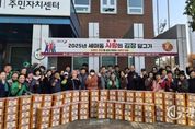 광장일보 나병석 기자 | 오산시 세마동 행정복지센터는 세마동 단체연합이 11월 19일과 20일 이틀간 세마동 행정복지센터 1층 광장에서 지역 취약계층을 위한 ‘2025년 세마동 사랑의 김장담그기’ 행사를 따뜻한 분위기 속에서 진행했다고 밝혔다. 이번 김장 나눔 행사는 19일 김장 속재료 준비를 시작으로, 20일 속 채우기와 포장 등 본 작업이 이어졌으며, 세마동 단체연합은 ‘손끝의 온정을 담아 전합니다’라는 슬로건 아래 정성을 모아 행사를 진행했다. 올해 마련된 김장은 총 480포기 규모로, 세마동 관내 독거노인, 저소득층, 한부모 가정 등 어려운 이웃들에게 20일 당일 전달됐다. 신정순 세마동 새마을부녀회장은 “김장 나눔은 세마동 주민들이 마음을 모아 서로를 돌보는 뜻깊은 시간”이라며 “작은 정성이지만 필요한 이웃들에게 따뜻함이 전해지길 바란다”고 말했다. 유미정 세마동장은 “김장담그기 행사는 세마동 주민들의 마음이 모여 만들어진 정성의 상징”이라며 “정성껏 담근 김치가 겨울을 앞둔 이웃들에게 큰 힘이 되길 바란다”고 전했다.
