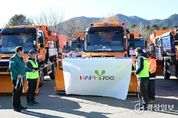 광장일보 이현나 기자 | 평창군은 겨울철 폭설 및 결빙에 대비해 ‘겨울철 도로 제설 대책’을 본격 추진하기 위해 17일 오후 2시, 평창종합운동장 주차장에서 ‘2025~2026 동절기 재난 대책 기간 도로 제설 발대식’을 개최했다. 이날 발대식에는 심재국 평창군수 및 제설 운영 담당자 등 68여 명이 참석하여, 겨울철 제설 작업이 원활히 이루어질 수 있도록 결의를 다짐하고, 제설 차량을 점검하는 등 본격적인 제설 시작에 앞서 협력체계를 다졌다. 현재 평창군은 군 보유 및 임차 장비 총 36대, 제설제(소금 7,000톤, 염화칼슘 및 염화수 230톤, 모래 3,196㎥)를 확보하여, 제설대기소 및 읍・면사무소에 배치를 완료한 상태다. 이번 제설 대책은 겨울철 폭설 및 결빙 시 신속하고 체계적인 제설 대응을 통해 차량의 원활한 통행을 돕고, 교통사고를 예방하며, 군민의 통행 불편을 최소화하고 안전한 도로 통행권을 확보하는 데 목적이 있다. 오현웅 군 건설과장은 “모든 준비를 마친 만큼 올겨울 폭설로 인한 군민들의 불편을 최소화하고, 교통사고 예방과 도로 안전 확보에 최선을 다하겠다.”라며 “특히 제설